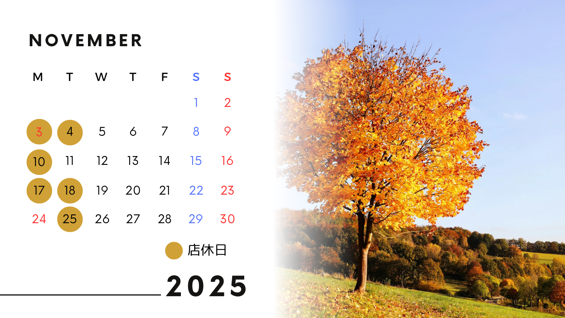 11月店休日